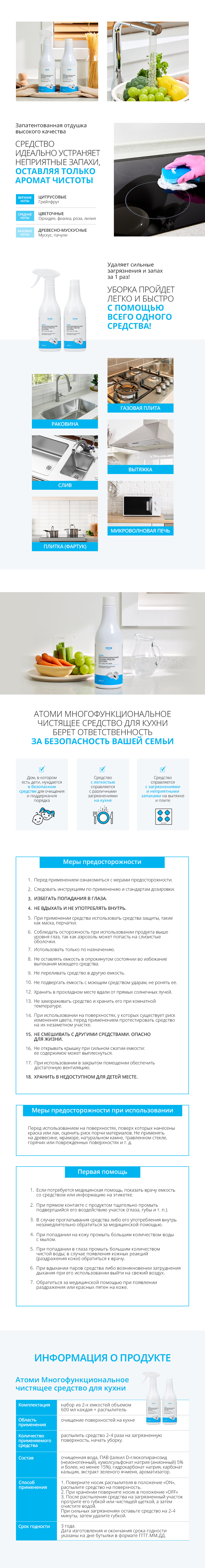 Атоми Многофункциональное чистящее средство для кухни (2 емкости + распылитель)