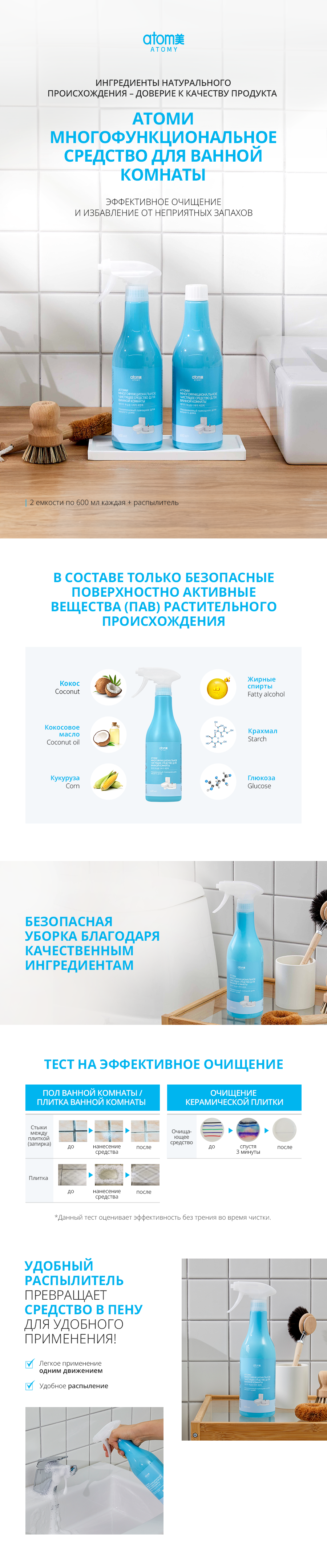 Атоми Многофункциональное чистящее средство для ванной комнаты (2 емкости + распылитель)